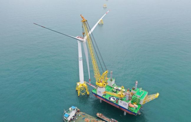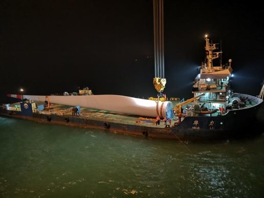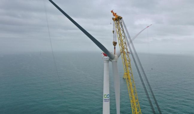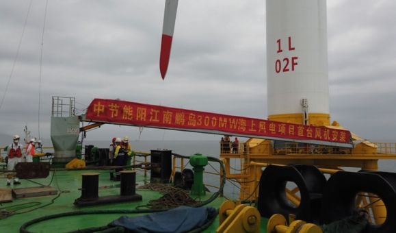 中国节能阳江海上风电项目首台5.5兆瓦风机吊装成功