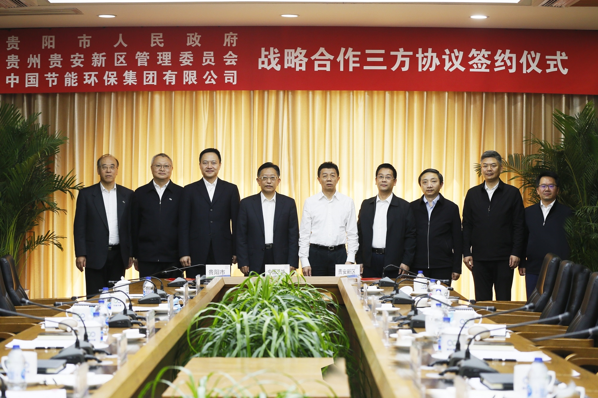 4月22日下午,中国节能环保集团有限公司与贵阳市政府、贵安新区在节能大厦签署了战略合作三方协议。集团公司党委书记、董事长宋鑫,党委副书记、总经理余红辉,贵州省政协副主席,贵阳市委副书记、市长、贵安新区党工委副书记、管委会主任陈晏共同见证签约。集团公司党委常委、总会计师朱庆锋,贵安新区党工委委员、管委会副主任,贵阳市政府党组成员毛胤强,贵阳市副市长冉斌分别代表各方签署战略合作协议。