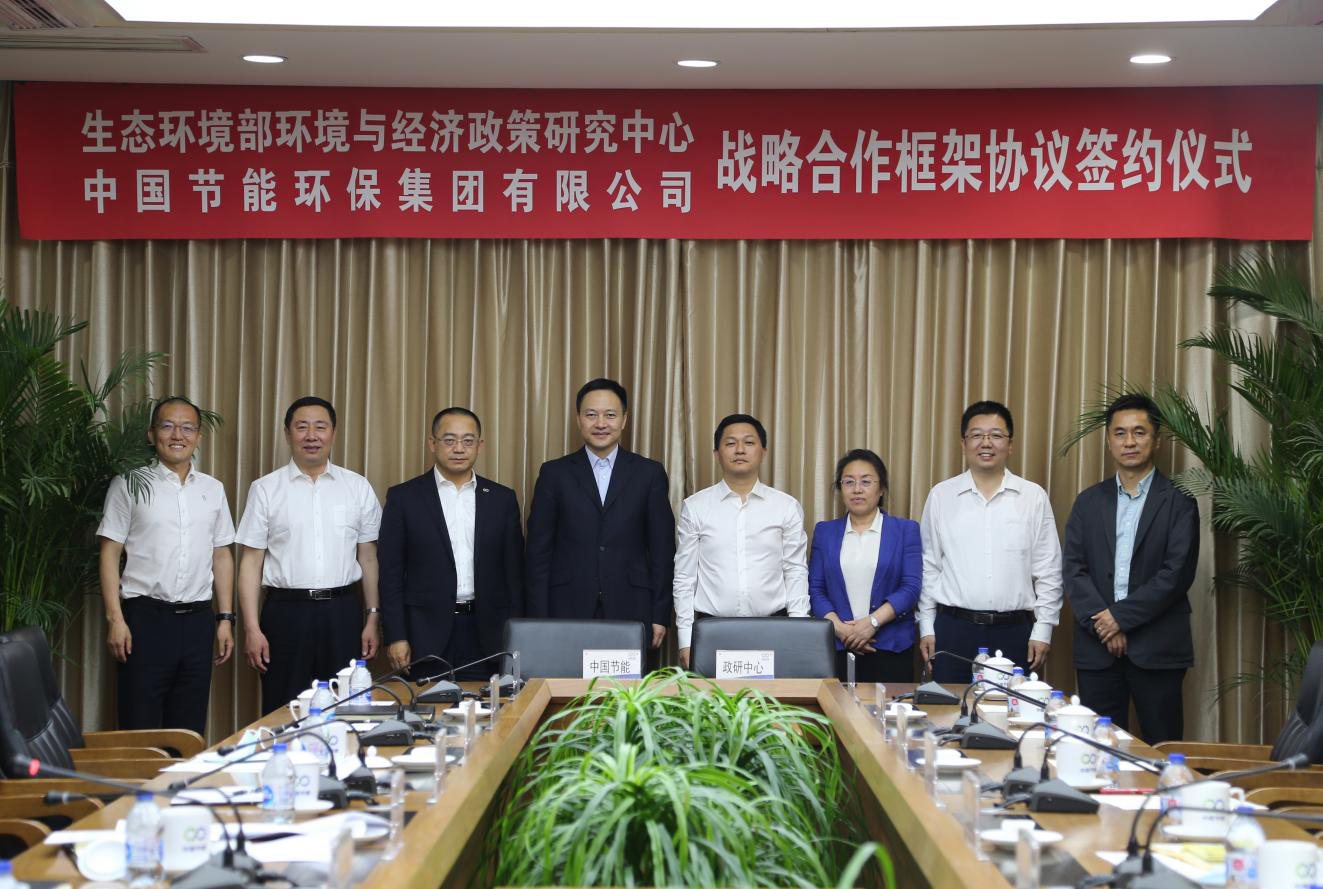 5月31日下午,中国节能环保集团有限公司与生态环境部环境与经济政策研究中心(以下简称“政研中心”)在节能大厦签署了战略合作协议。集团公司党委副书记、总经理余红辉,政研中心党委书记、主任钱勇共同见证签约。
