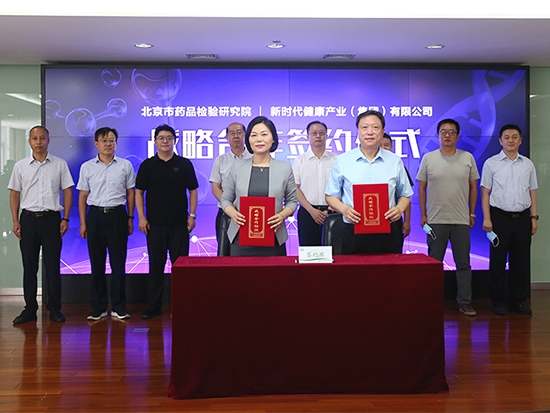 7月7日,新时代健康产业(集团)有限公司(以下简称“健康产业公司”)与北京市药品检验研究院(以下简称“市药检院”)在北京总部科研基地举办战略合作签约仪式。新时代集团党委书记、董事长冯玉珂,健康产业公司党委书记、总经理张红,以及北京市昌平区副区长马瑞、市药检院院长杨文良等政府等和有关单位领导参加。