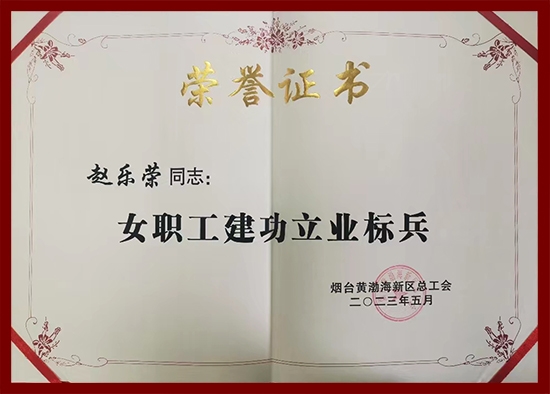 近日,烟台黄渤海新区总工会决定选树表彰一批女职工先进集体和先进个人,烟台新时代健康产业日化有限公司(简称烟台日化公司)职工赵乐荣同志因成绩优异、贡献突出,喜获“烟台黄渤海新区女职工建功立业标兵”荣誉称号。