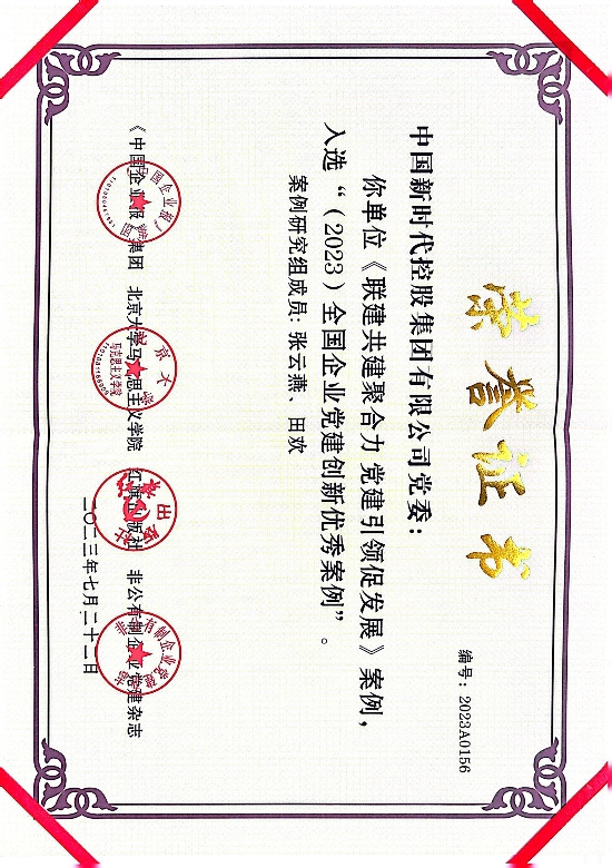 近日,由求是网指导,《中国企业报》集团、北京大学马克思主义学院、红旗出版社共同主办的2023全国企业党建(案例)研讨会暨第三届企业党建创新优秀案例发布仪式在京举行,新时代集团《联建共建聚合力 党建引领促发展》党建案例经过初选、复审、终审三个阶段,脱颖而出,成功入选“2023全国企业党建创新优秀案例”。