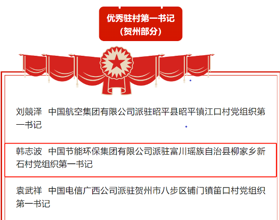 近日,广西壮族自治区抓党建促乡村振兴工作暨2021—2022年度驻村工作队先进集体和优秀个人总结表彰电视电话会议在南宁召开。集团公司定点帮扶驻村干部韩志波同志获得“优秀驻村书记”荣誉称号,为集团公司和新时代集团争得了荣誉。