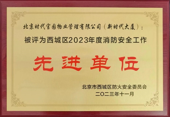 2023年11月,官园物业公司被北京市西城区防火安全委员会年授予“西城区2023年度消防安全工作先进单位”荣誉称号,这是我司连续第四次被授予该称号。