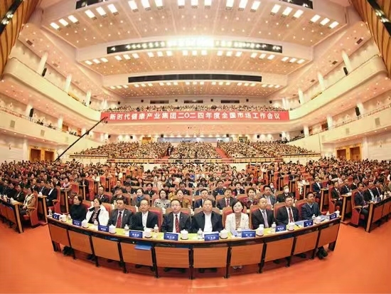 3月21日,健康产业公司2024年度全国市场工作会在北京会议中心圆满召开。会议以“健康中国志愿服务行动” 启动仪式隆重开场。《健康中国观察》杂志社副社长、健康中国研究中心常务副秘书长、中华志愿者协会健康中国志愿服务总队队长王永进,中华志愿者协会健康中国志愿服务总队主任周富章等出席,参与健康中国志愿服务签约授旗仪式。新时代集团董事长冯玉珂,健康产业公司总经理张红及领导班子成员,第七届国珍市场发展咨询委员会委员及来自全国各地的经销商齐聚一堂,交流成功经验,启迪开拓创新。