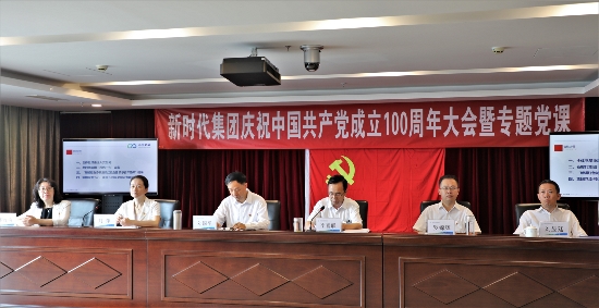 在中国共产党百年华诞来临之际,为庆祝中国共产党成立100周年,深入开展党史学习教育,讴歌中华民族实现伟大复兴的百年历程,砥砺奋斗精神,大力弘扬新时代优秀党员干部先锋模范精神面貌,以优异成绩献礼建党百年华诞。6月30日,新时代集团召开庆祝中国共产党成立100周年大会,公司领导班子成员,各子公司领导班子成员、中层以上干部,以及全体党员和入党积极分子共计230人参加了会议,会议由党委副书记、总经理李喜联主持。