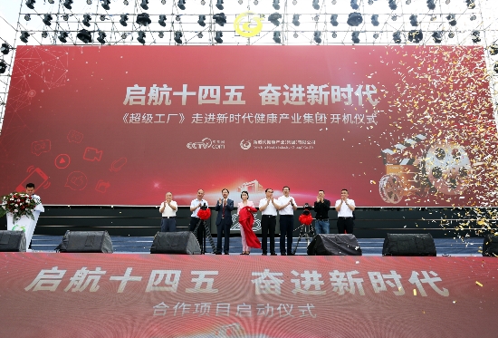 健康产业公司与央视网知名栏目《超级工厂》展开合作。栏目组将走进烟台生产车间,通过直播的形式,向全国观众展示健康产业公司优质产品的诞生历程,展示民族品牌实力,提高广大人民群众对民族品牌的认知,助力民族品牌发扬光大。央视国际网络有限公司总经理助理、产业发展事业群总经理宋维君在现场发言中谈到,通过对生产基地的了解,他深刻感受到了新时代健康产业公司的巨大发展潜力,对民族品牌的未来充满了信心。仪式现场,张绍鹏副主任,姚光磊局长,新时代集团原党委书记付万成,宋维君总助,刘国平董事长,北京国珍爱心基金会理事长、健康产业公司董事、原党委书记、总经理黄永刚,张红总经理,刘胜副总经理,共同为《超级工厂》走进健康产业公司直播开机揭幕。