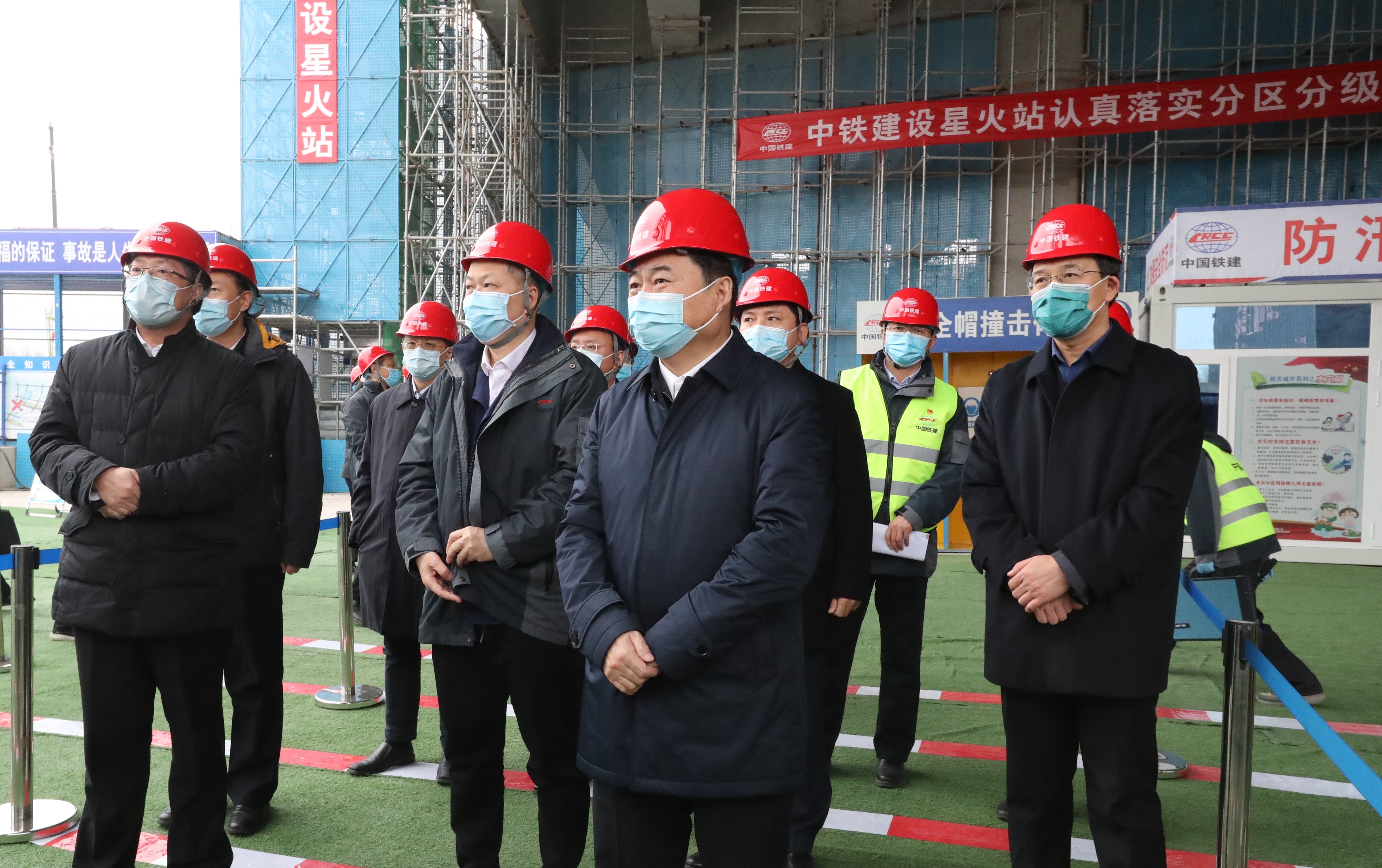 郝鹏来到中国铁建承建的京沈高铁星火站项目工地,仔细了解防护物资储备、员工排查台账等,随后登上高架层施工平台实地查看工程进展,详细了解企业返工复工人数有多少、遇到的主要困难有哪些等,称赞企业点对点接送农民工返岗、项目部采取封闭式网格化管理的措施务实有效。郝鹏要求企业负责人要进一步压实责任、强化担当,在毫不放松抓好疫情防控工作的同时,高标准高质量高效率抓好重点项目建设。进一步加强员工健康监测和个人防护,落实落细工地、食堂、宿舍等防控措施,按照合理、适度、管用原则,制定科学有效应急处置措施,严守底线抓好疫情防控,有力有序推动施工建设。