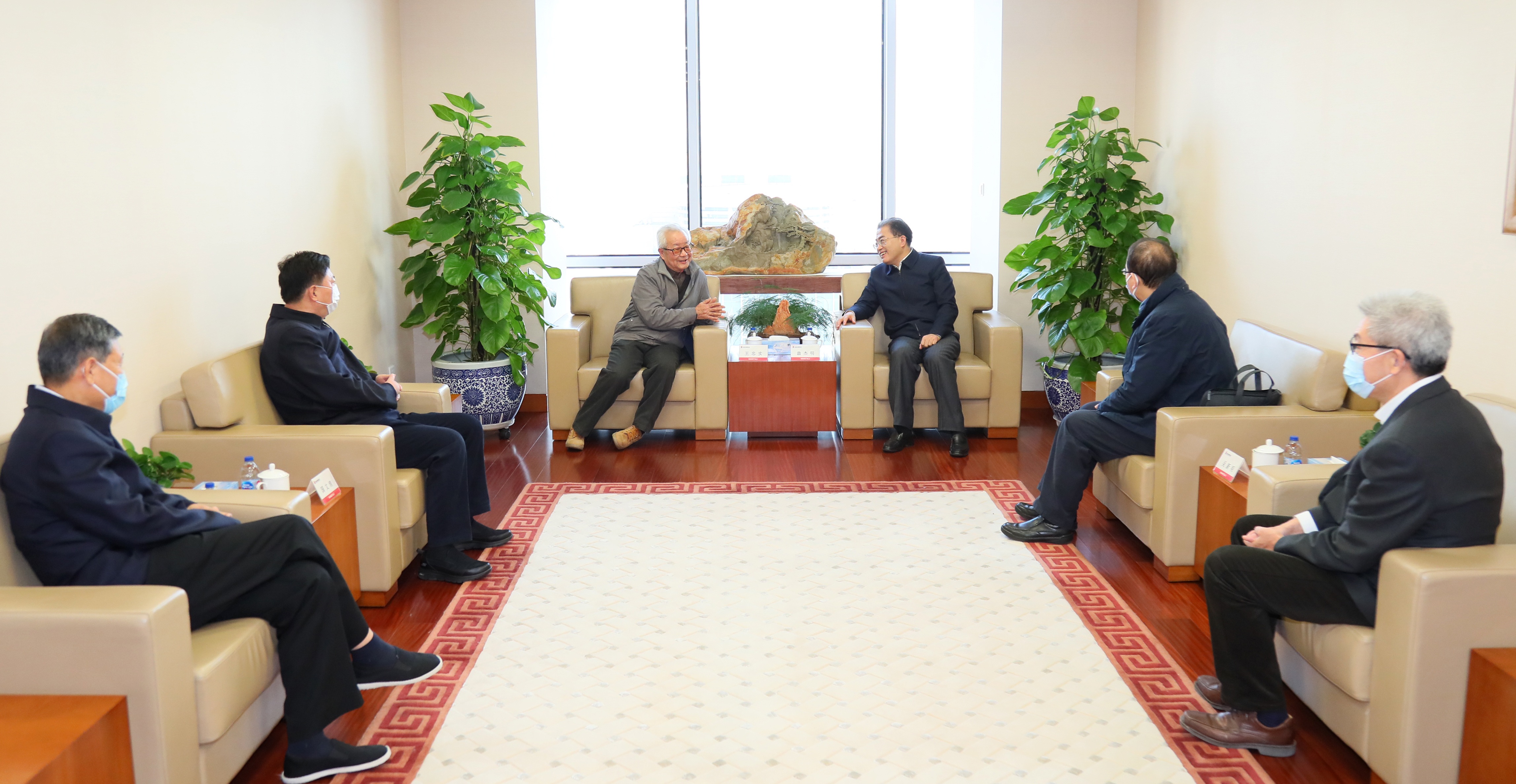 郝鹏先后到中国船舶集团看望慰问91岁高龄的老党员、工程院院士陆建勋,到中国中车集团看望慰问老干部王泰文,与他们促膝交流,关切地询问他们生活和健康情况。郝鹏向他们介绍了一年来国资央企事业发展情况,对老专家、老干部为我国技术创新、企业改革发展作出的杰出贡献表示崇高的敬意,并认真听取他们对工作的意见建议,希望他们一如既往地关心、支持国资央企事业发展。郝鹏强调,企业各级党组织要深入学习贯彻习近平总书记关于老干部工作的重要指示精神,在思想上关心、生活上照顾、精神上关怀老同志,用心用情为大家办实事、办好事,真正让他们晚年生活安心、舒心、暖心;要充分发挥老干部的政治优势、经验优势、威望优势,通过他们的言传身教和点拨指导,帮助企业年轻干部、科研人员等积累经验、增长才干、健康成长,进一步推动企业深化改革、创新发展。